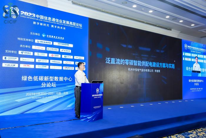 中恒電氣IDC BD副總經理李善策在“綠色低碳新型數據中心分論壇”上作《泛直流的零碳智能供配電建設方案與實踐》主題演講。