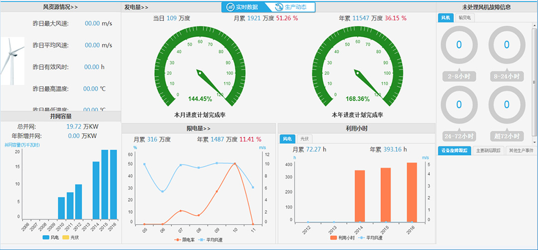 新能源智能管控平臺(tái)針對(duì)風(fēng)電、光伏等新能源行業(yè)“既集中、又分散”的特點(diǎn),通過(guò)集成風(fēng)(光)電場(chǎng)分散的各類SCADA系統(tǒng),結(jié)合計(jì)算機(jī)網(wǎng)絡(luò)、物聯(lián)網(wǎng)、云資源平臺(tái)、大數(shù)據(jù)等技術(shù),實(shí)現(xiàn)風(fēng)(光)電場(chǎng)設(shè)備的遠(yuǎn)程集中監(jiān)控和智能調(diào)度;通過(guò)生產(chǎn)管理的流程化、標(biāo)準(zhǔn)化和專業(yè)化,提升企業(yè)生產(chǎn)效率和管理水平,降低生產(chǎn)運(yùn)營(yíng)成本,提升經(jīng)濟(jì)效益;利用先進(jìn)的數(shù)據(jù)挖掘和并行計(jì)算技術(shù)對(duì)實(shí)時(shí)數(shù)據(jù)和業(yè)務(wù)數(shù)據(jù)進(jìn)行進(jìn)一步的統(tǒng)計(jì)分析和專業(yè)建模,實(shí)現(xiàn)企業(yè)的運(yùn)營(yíng)監(jiān)控和績(jī)效評(píng)估,用真實(shí)、準(zhǔn)確、全面的數(shù)據(jù)支撐企業(yè)經(jīng)營(yíng)的持續(xù)優(yōu)化和健康發(fā)展,打造智能、高效的友好型新能源。
