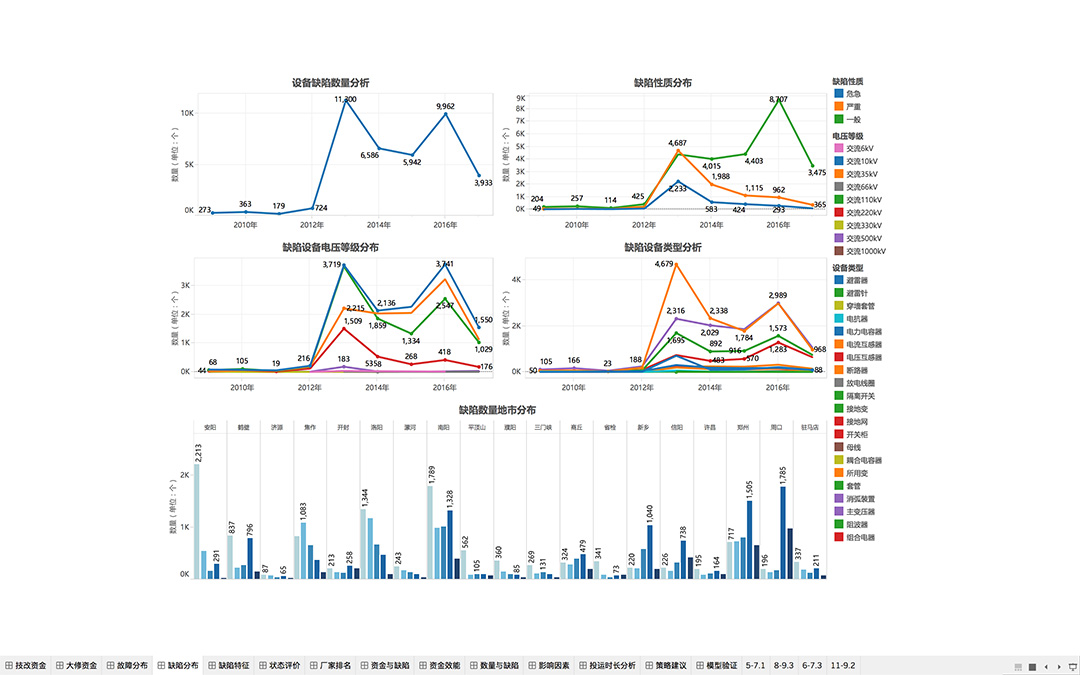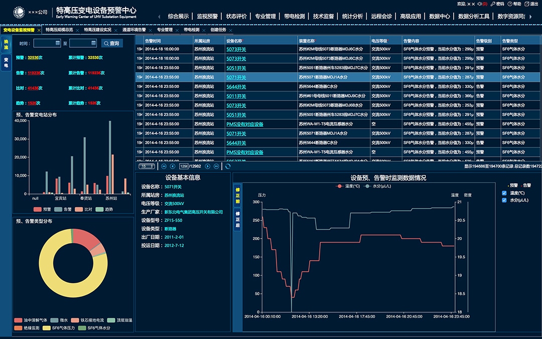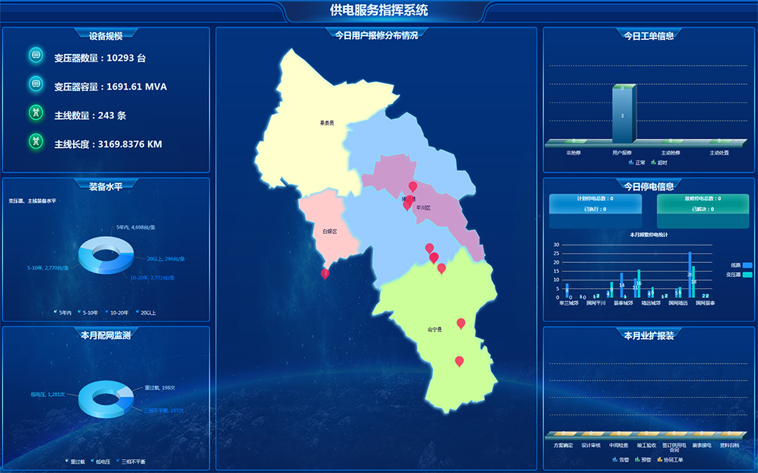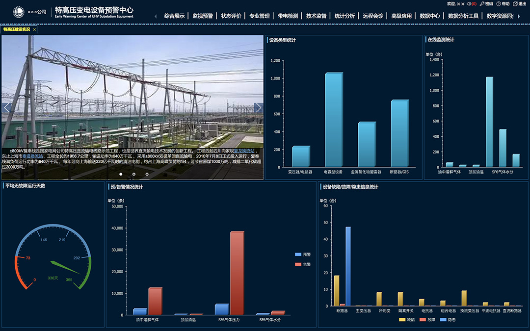 為各級(jí)定制,一鍵展示電網(wǎng)整體規(guī)模數(shù)量、設(shè)備裝備水平,運(yùn)行工況、運(yùn)檢管控情況、缺陷風(fēng)險(xiǎn)情況和各類預(yù)警等信息,實(shí)現(xiàn)管理人員對(duì)整個(gè)生產(chǎn)工作的全面掌控。