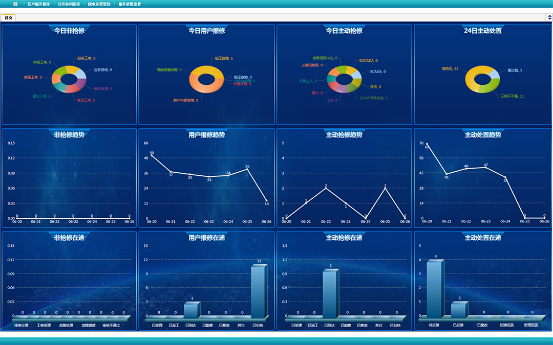 集成營(yíng)配調(diào)各系統(tǒng)業(yè)務(wù)數(shù)據(jù)及流程,實(shí)現(xiàn)配網(wǎng)搶修指揮業(yè)務(wù)融合、營(yíng)銷類與搶修類接單業(yè)務(wù)融合、配網(wǎng)調(diào)度與配網(wǎng)搶修指揮業(yè)務(wù)融合,促進(jìn)營(yíng)配調(diào)業(yè)務(wù)末端融合,支撐集搶修指揮、客戶服務(wù)、配網(wǎng)運(yùn)行監(jiān)測(cè)預(yù)警于一體的供電服務(wù)指揮中心支撐應(yīng)用平臺(tái)。