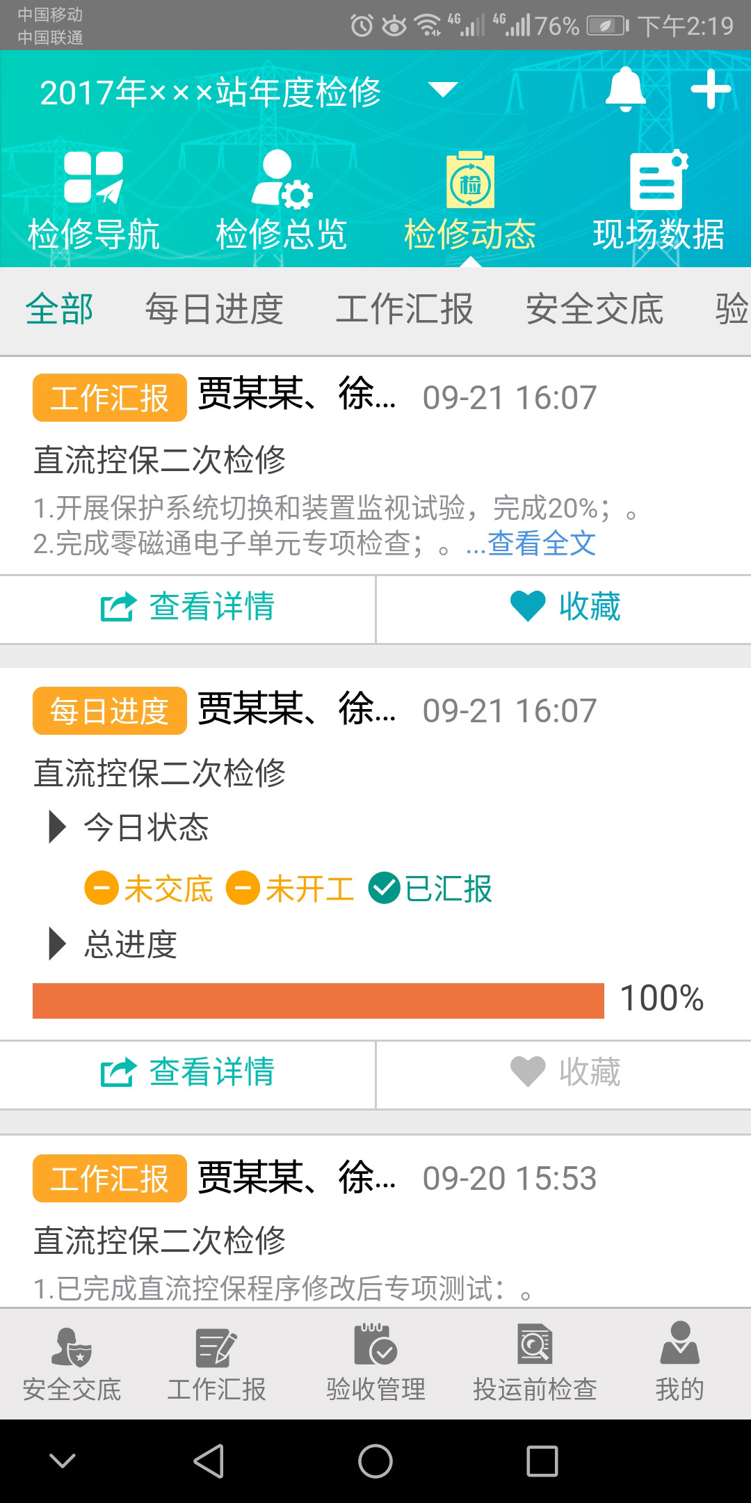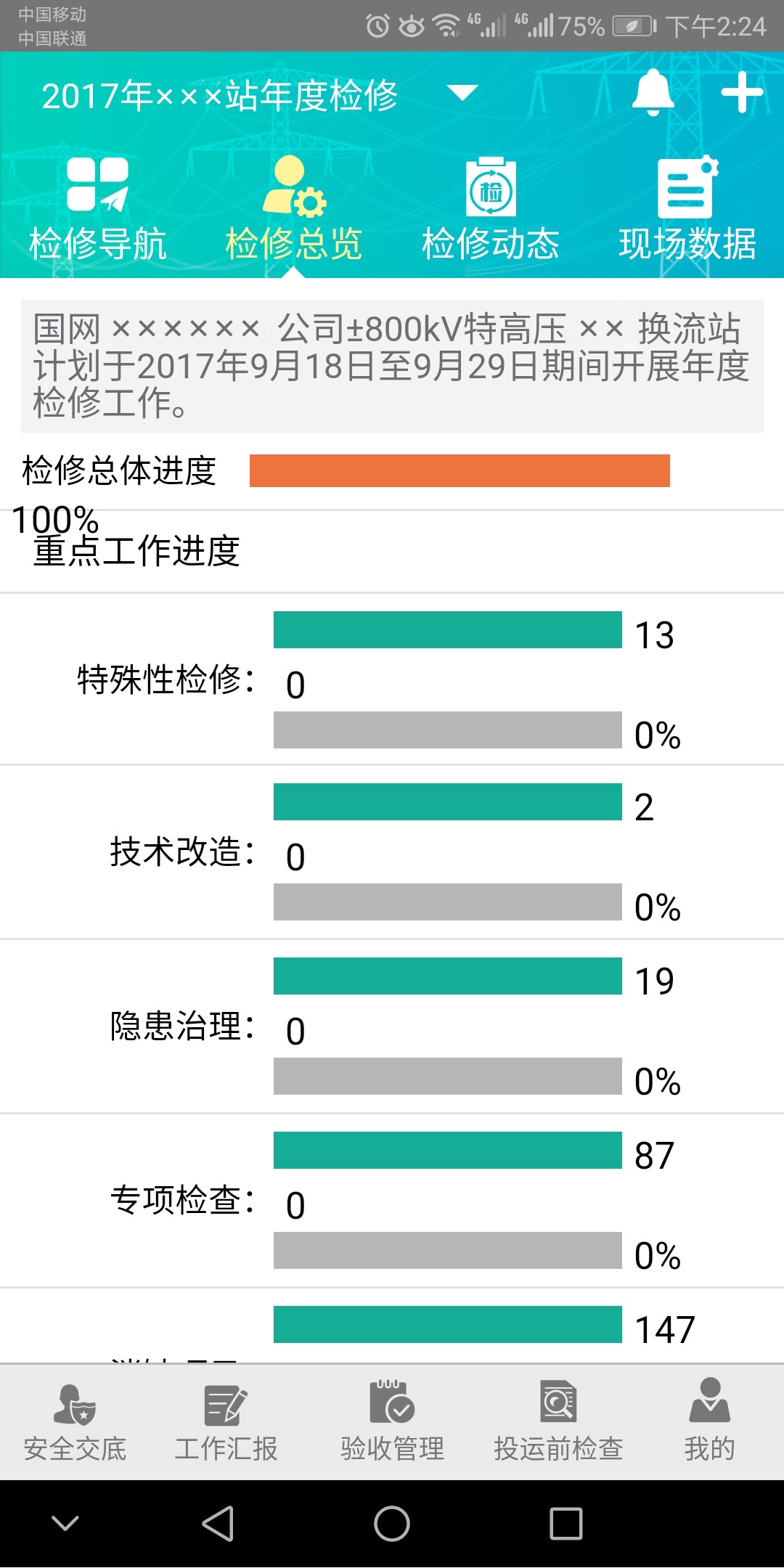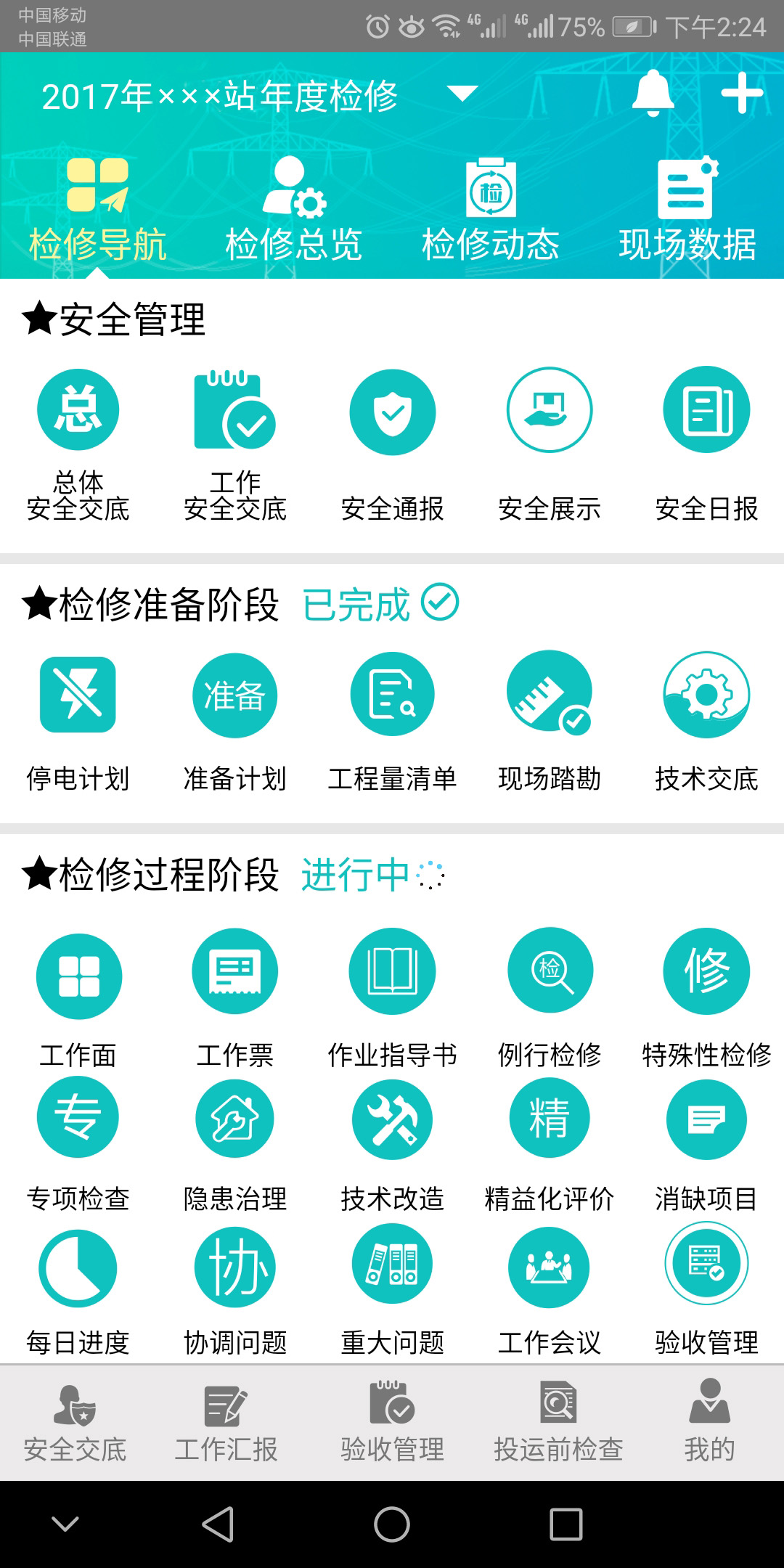 針對(duì)驗(yàn)收、運(yùn)維、檢測(cè)、評(píng)價(jià)、檢修的標(biāo)準(zhǔn)化管理路線,在統(tǒng)一信息系統(tǒng)數(shù)據(jù)接口、統(tǒng)一數(shù)據(jù)規(guī)范及安全防護(hù)策略的基礎(chǔ)上,通過(guò)與PMS2.0等系統(tǒng)的集成,開(kāi)發(fā)了一體化的智能運(yùn)檢全業(yè)務(wù)移動(dòng)管控平臺(tái),通過(guò)移動(dòng)APP功能,實(shí)現(xiàn)人員、設(shè)備、裝備等識(shí)別定位,設(shè)備巡檢信息、檢測(cè)記錄和試驗(yàn)結(jié)果錄入,遠(yuǎn)程會(huì)商、應(yīng)急搶修等功能,提高現(xiàn)場(chǎng)作業(yè)信息化水平,提高巡檢數(shù)據(jù)錄入的及時(shí)性和標(biāo)準(zhǔn)型,增強(qiáng)了指揮管理人員對(duì)作業(yè)現(xiàn)場(chǎng)的全流程管控能力。